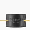 An exclusive iconic Balmain Hair Couture hair accessory. The handcrafted Golden Hair Barrette is made of genuine Nappa leather and embossed with the signature logo. The Barret fastens with a hand-polished, 18K gold-plated hairpin with engraved logo. The supple leather is shaped to fit seamlessly around ponytails and buns. A delightful addition that accentuates any hairstyle.